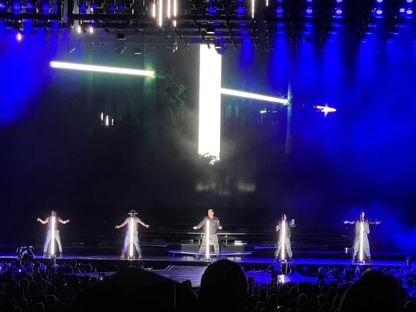 Venue: The concert was held at the Ameris Bank Amphitheater. We had a parking pass that allowed us to park close, which was SUPER nice. (Thank you, Christopher!) We also saw a lot of people tailgating before hand, which made us feel less out of place for doing that ourselves. After having our preconcert dance party in the car, we headed in. Cristina’s husband did us right by getting us seats under cover and in the middle of the venue (Again, Thank You, Christopher!). The next best seat, to us, would’ve been right up against the stage. Could you imagine TOUCHING a Backstreet Boy?! *SWOON*
